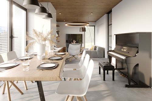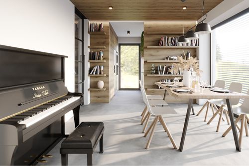 interiér s pianem