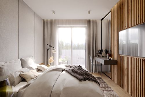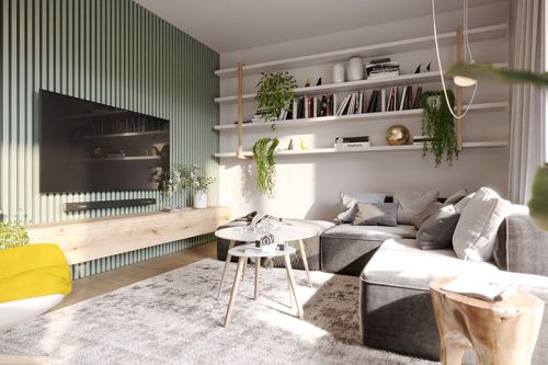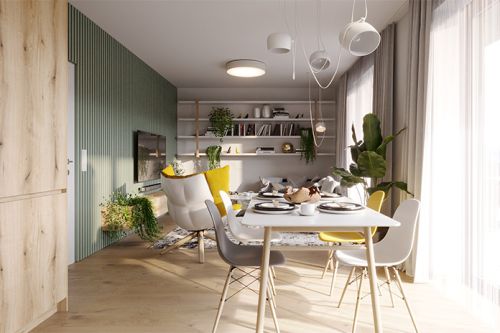 Typový nábytek je vybrán tak, aby byl pohodlný a zároveň vzdušný a výrazný.