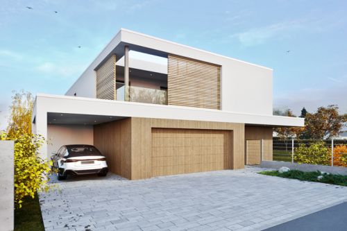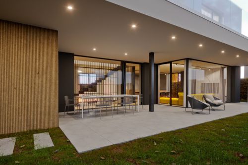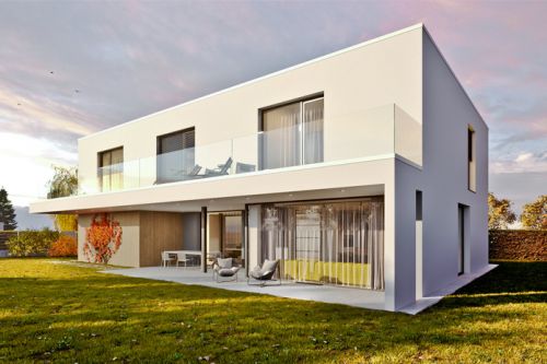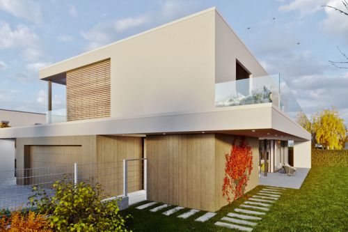 Moderní novostavba rodinného domu působí z příjezdové cesty uzavřeně, obytné prostory se však otevírají do zahrady, tedy na jihozápad. Dům je tvarově uspořádán tak, aby umožňoval co největší kontakt se zahradou a venkovním prostředím. Dům se pyšní velkou zastřešenou terasou navazující na zahradu. Dále velkorysým balkónem, který je přístupný z ložnic a prostornou střešní terasou, která navazuje na interiér sauny a díky laťové konstrukci umožňuje ničím nerušený relaxační pobyt.