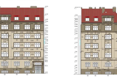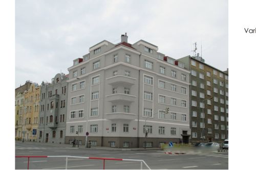 Barevné ztvárnění fasády při rekonstrukci stavby na Ortenově náměstí bylo předloženo v několika variantách, ze kterých klient vybíral jemu nejbližší. Všechny návrhy vychází ze barevnosti staveb v blízkém okolí a z původního architektonického návrhu. Nejúspěšnější byla varianta v zemitých barvách s odděleným horním patrem, které dynamicky probarví blok.