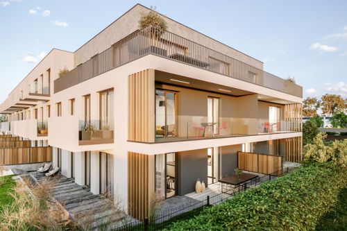 Dispozice domu je řešena jako trojtrakt s vnitřní chodbou, ze které jsou byty přístupné. Každý byt je navržen jako komfortní bydlení s otevřenými obývacími pokoji spojenými s kuchyní a jídelnou a s přístupem na předzahrádku, balkón či terasu. Přístup do venkovních prostor je také umožněn z většiny ložnic. Součástí bytů je dostatek úložných prostor (komora, místo pro vestavěné skříně).