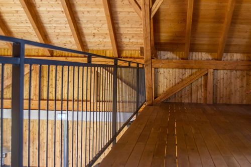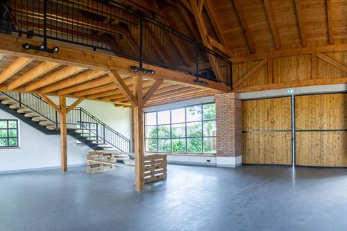 Interiér stodoly je rozčleněn na hlavní velkorysý prostor se dvěma galeriemi, na které je možné vstoupit po schodech. Na jedné straně jsou schody se středovou schodnicí, na straně druhé se jedná o schody betonové s dřevěným nášlapem. Součástí vybavení stavby je i sociální a technické zázemí.